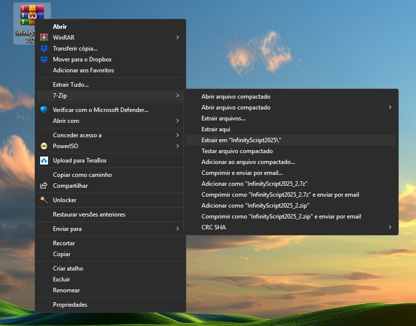 - Vá para a pasta aonde o download do script foi concluido, clique com o botão direito do mouse em cima dele e siga as opções da foto abaixo.