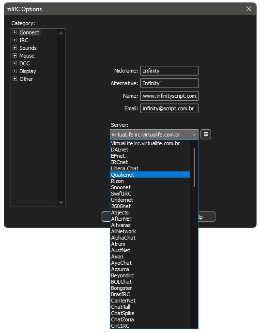 - No exemplo, selecionamos o servidor da "Quakenet" e clicamos em "Connect"
