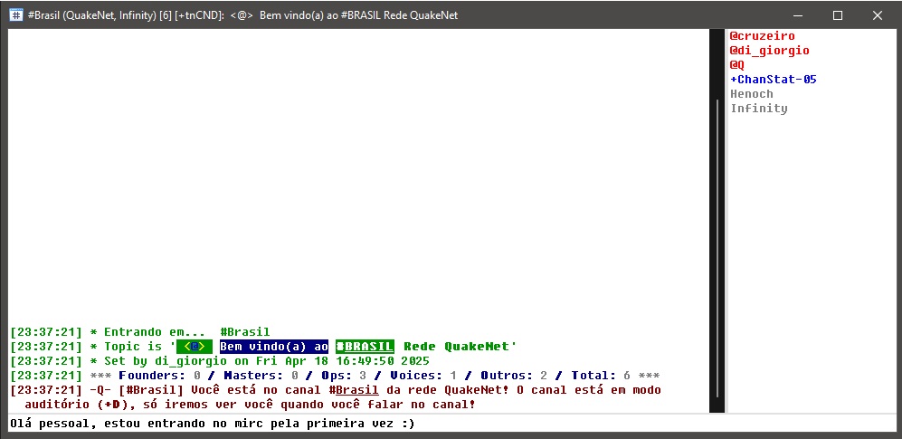 - Para mostrar um exemplo, vamos entrar no canal Brasil, o comando para entrar em canais é "/j Nome_do_canal" nesse caso vamos usar "/j Brasil"